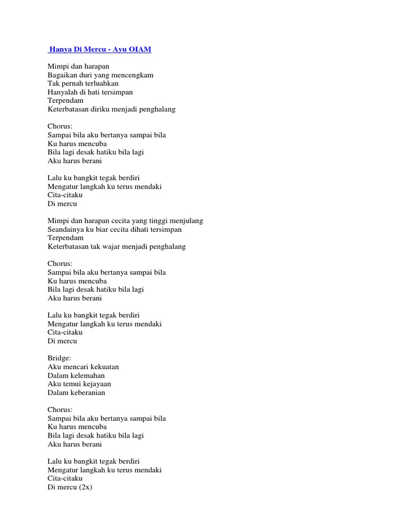 Lirik Lagu Hanya Di Mercu