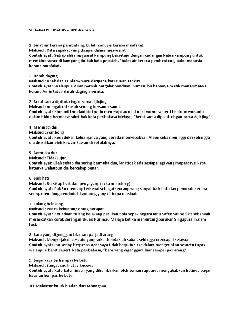 Senarai Peribahasa Tingkatan 4