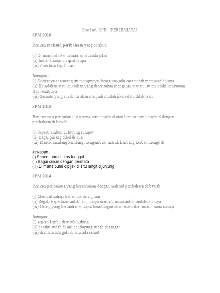 Peribahasa Dalam Soalan Bahasa Melayu Spm