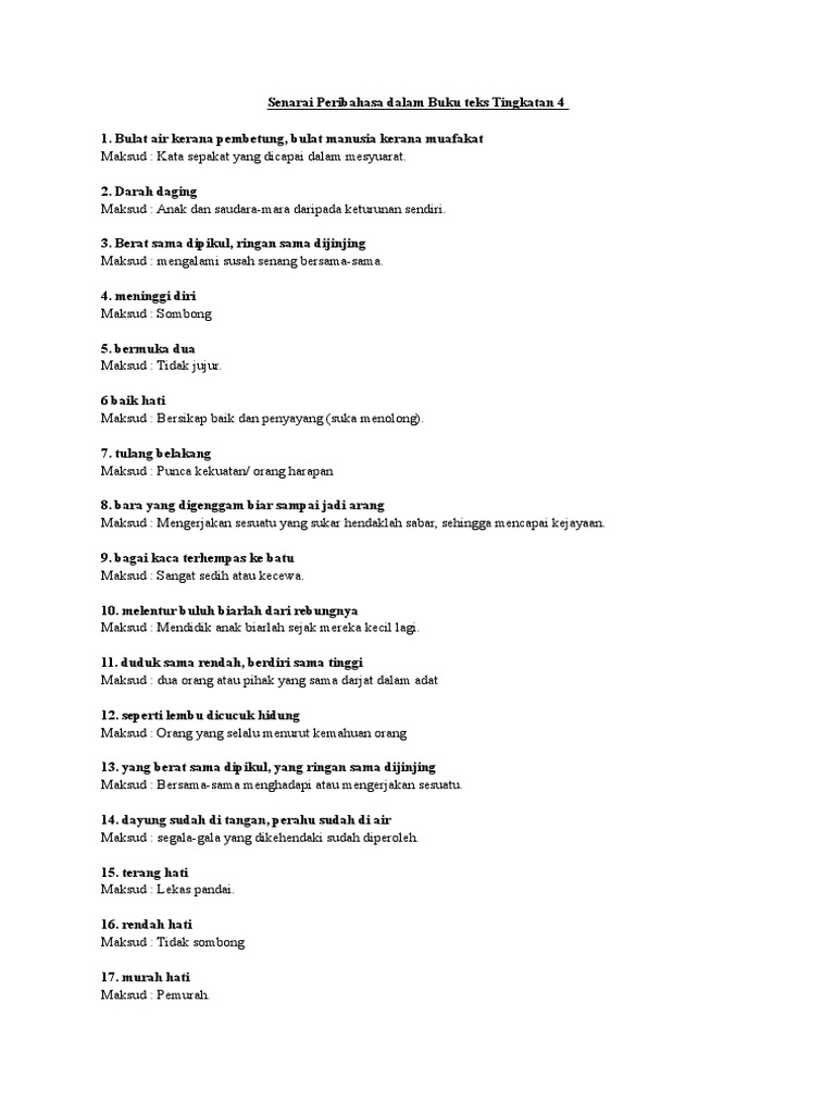 Senarai Peribahasa Dalam Buku Teks Tingkatan 4