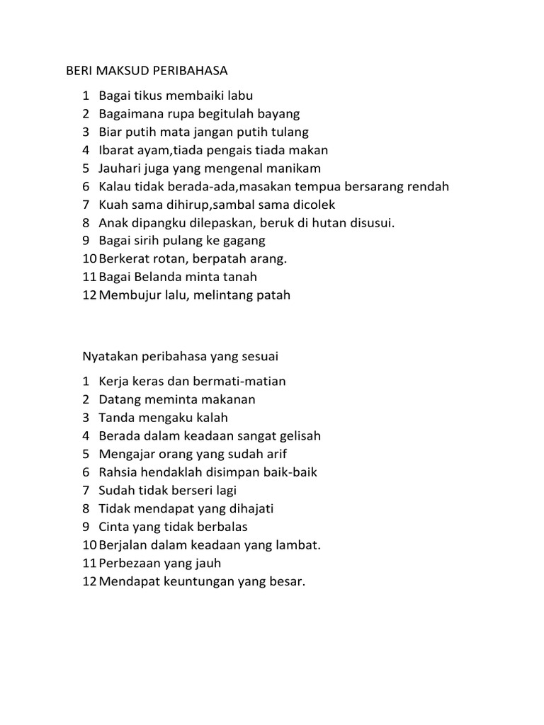 Beri Maksud Peribahasa Docx