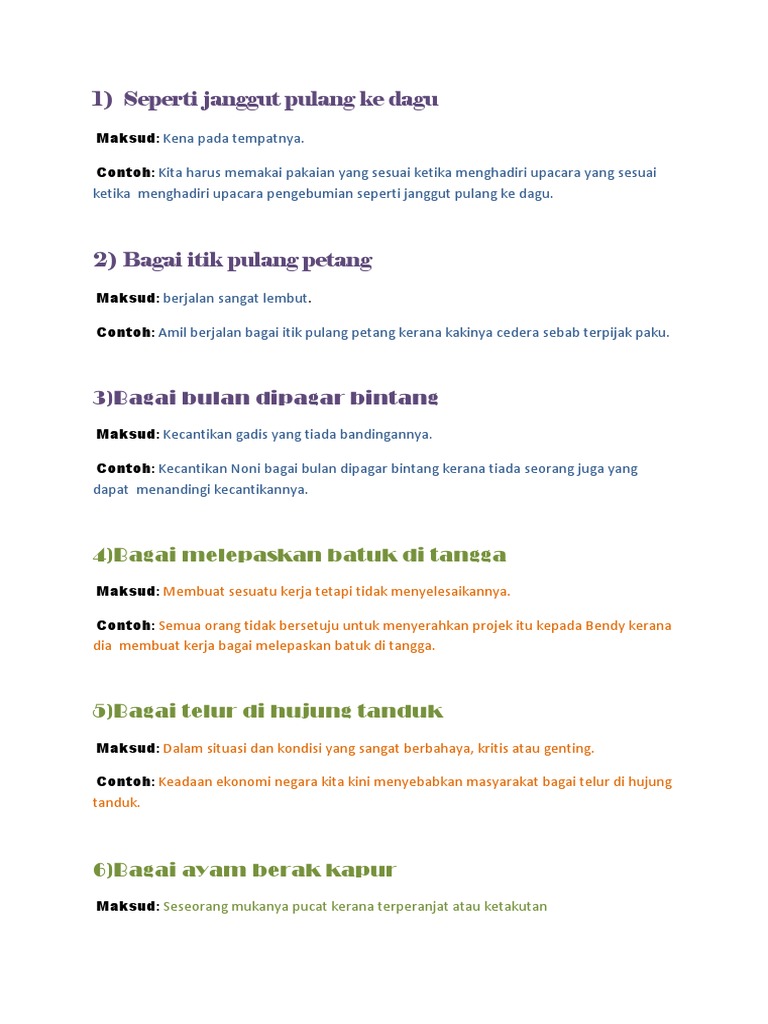 1 Seperti Janggut Pulang Ke Dagu 4 Bagai Melepaskan Batuk Di Tangga