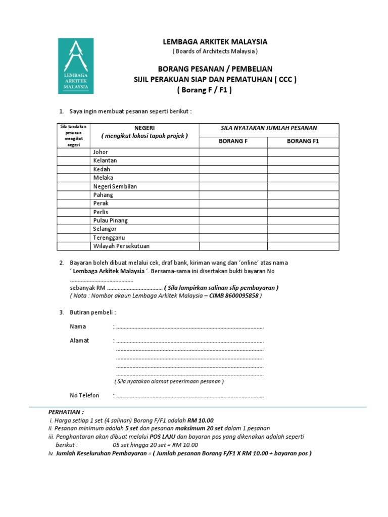 Borang Pesanan Pembelian Borang F