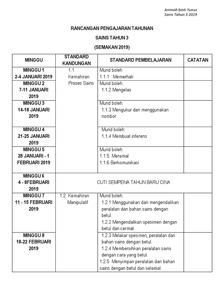 Rpt 2019 Sains Tahun 3 Kssr Semakan