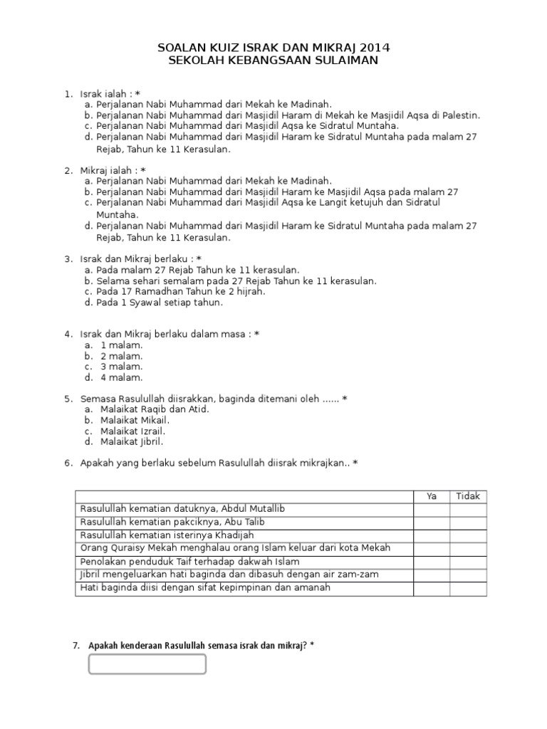 Nabi musa 2. Seeloknya kuiz israk mikraj ini diadakan setelah selesai ceramah israk dan mikraj dan mungkin juga dibuat dalam minggu israk mikraj tersebut. Soalan kuiz isra dan mikraj 2011nama murid. 1 aliran agama di negeri perak.