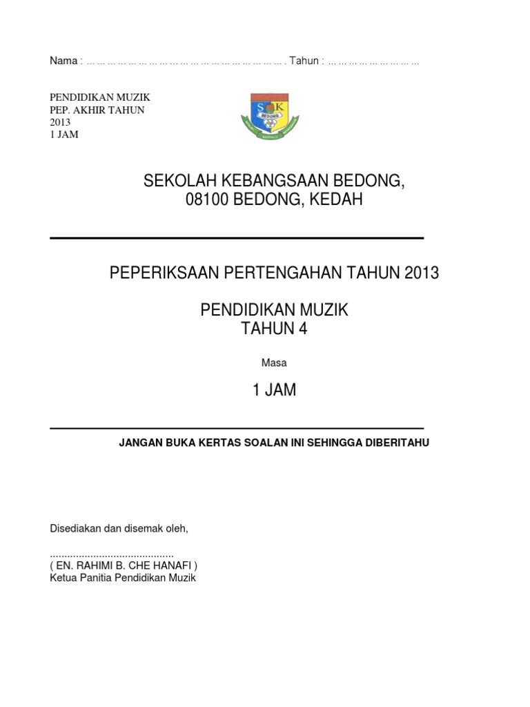 Kertas Soalan Peperiksaan Akhir Tahun Pendidikan Muzik Tahun 4 Tcer My
