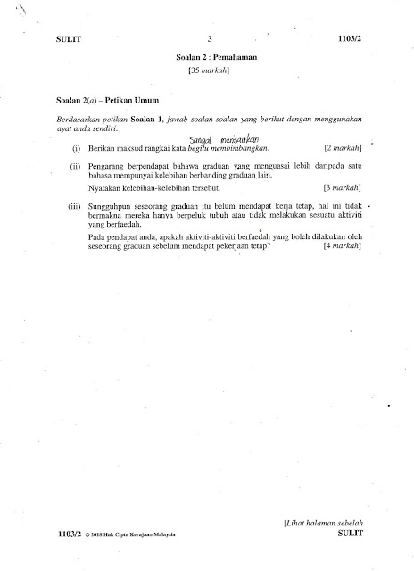 Laman Bahasa Melayu Spm Soalan Kertas Bahasa Melayu 2 1103 2 Spm 2018