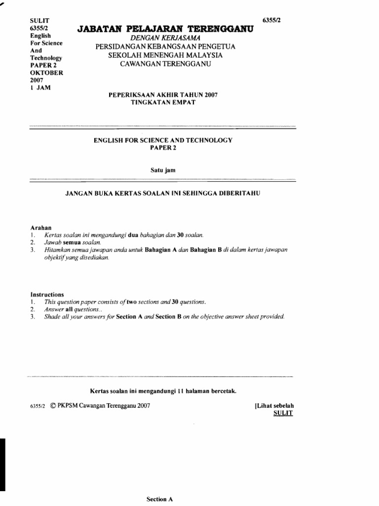 Contoh Soalan Peperiksaan Akhir Tahun Tingkatan 4 Bahasa Melayu 2019 Terengganu W