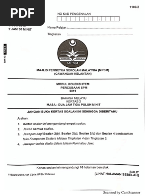 Soalan Percubaan Spm 2019 Negeri Kelantan Bahasa Melayu Kertas 1