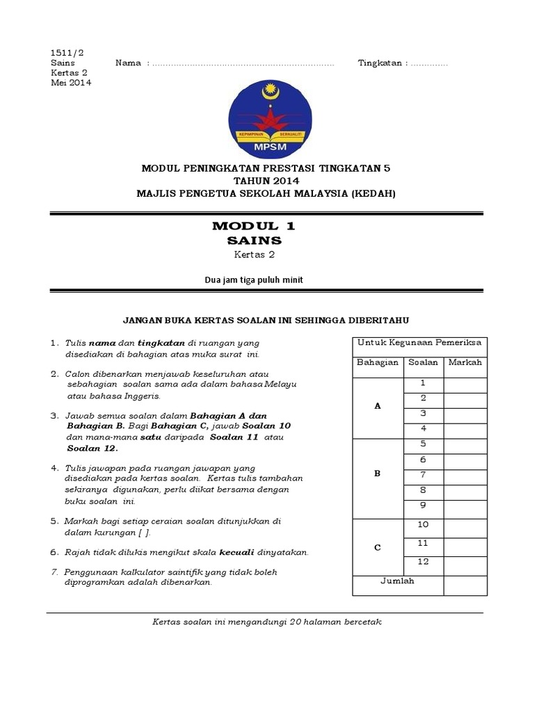 Modul Sains Kertas 2 Bahagian C
