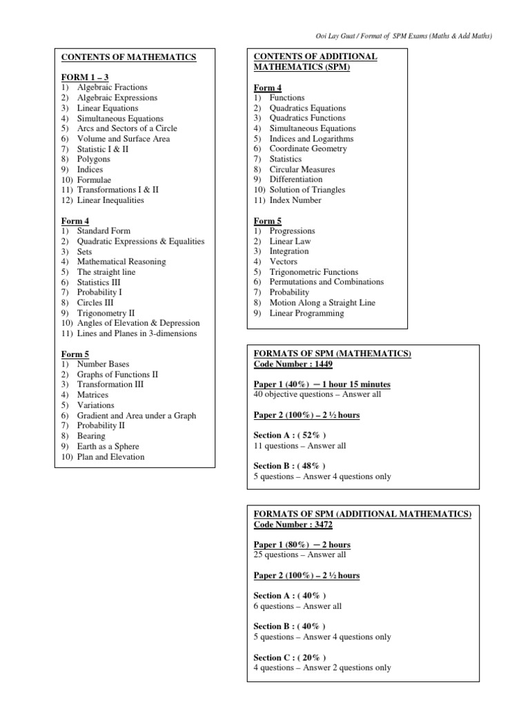 Format Peperiksaan Spm Add Math