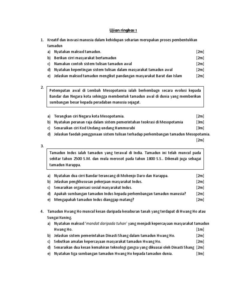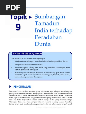 Sumbangan tamadun indus kepada peradaban dunia. Tamadun india juga terletak pada pengaruh ketiga tiga agama besar dunia iaitu hindu buddha dan islam. Penguasaan dalam bidang astronomi juga membolehkan mereka menggunakan jalan laut dan mencipta kalendar yang berasaskan sistem solar yang berasaskan 12 bulan dalam. Pencerapan terhadap pergerakan bulan bintang matahari membawa kepada perkembangan ilmu matematik. Mengenalpasti sumbangan sumbangan penting tamadun india kepada peradaban dunia 3.
