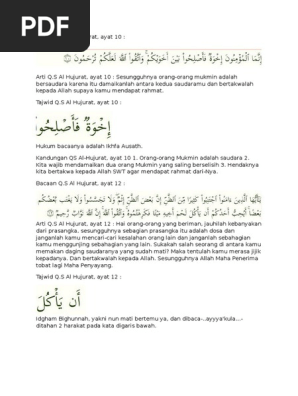 Ilmu Tajwid Surah Al Hujurat Ayat 10 Dan 12 Brainly Co Id