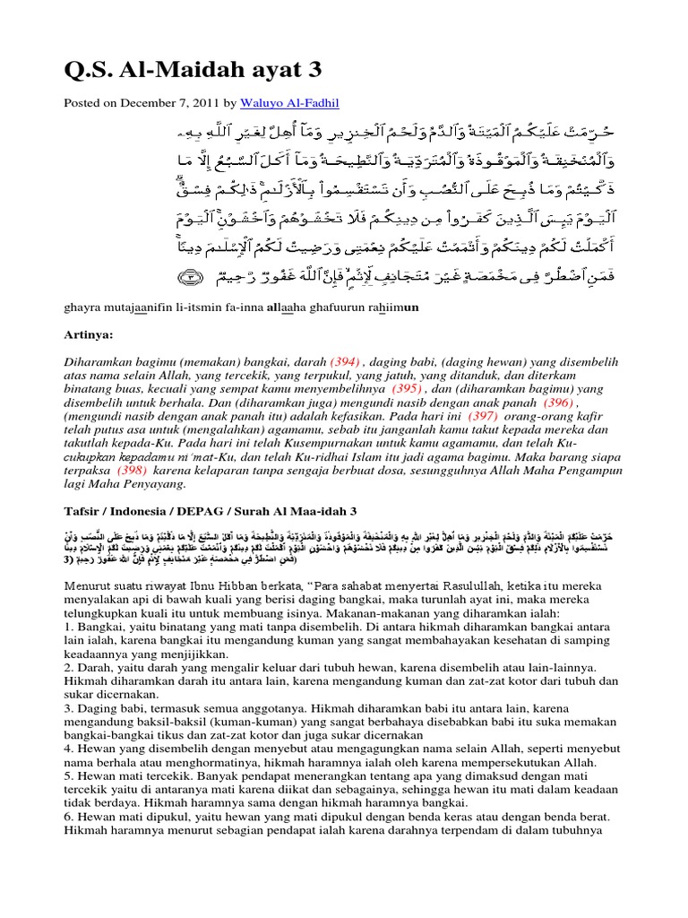 Surat Al Maidah Ayat 3 Lengkap Latin Dan Tafsir