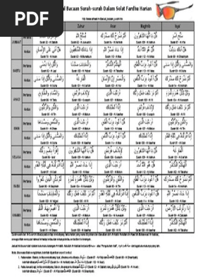 Adapun makmum tidak disunatkan membaca surah bahkan digalakkan untuk mendengar bacaan surah yang dibaca oleh imam. Save save jadual bacaan surah surah dalam solat fardhu haria. Search inside document mm 1 m 2 3 1 8 m6. Disunatkan membaca surah pada dua rakaat yang awal.