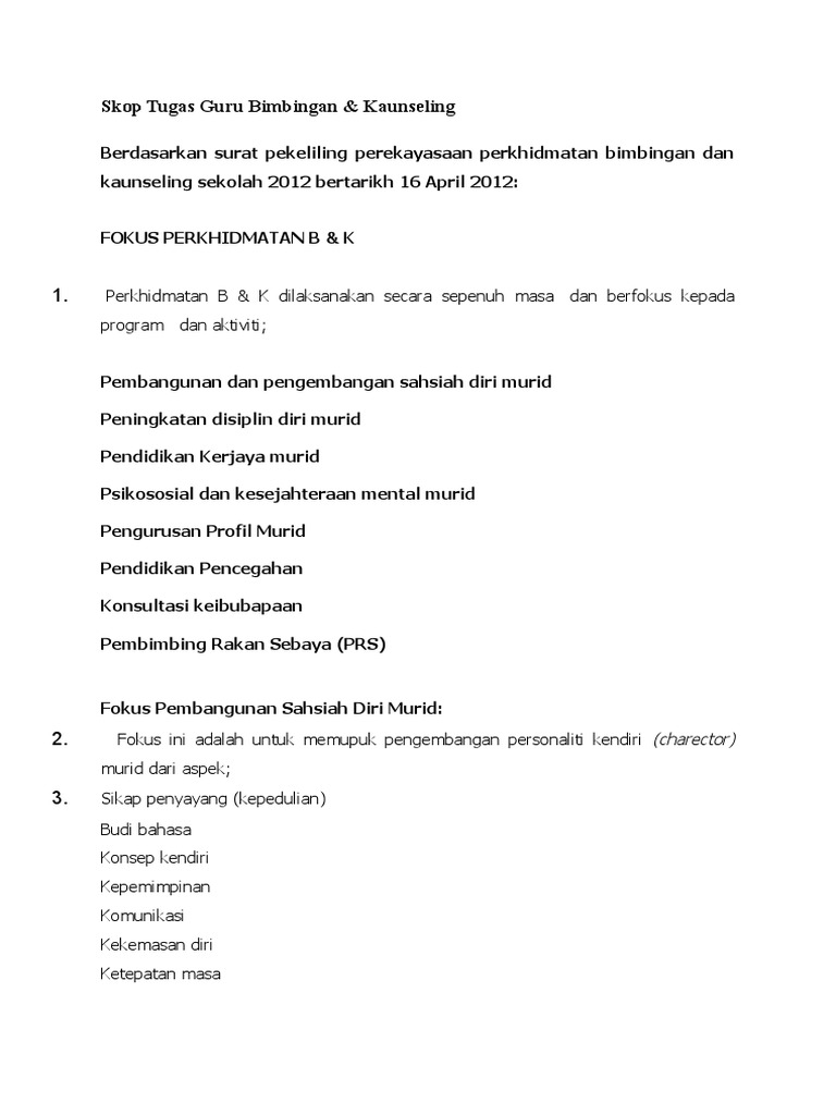 Skop Tugas Guru Bimbingan Pendapat Tindakan Filosofi
