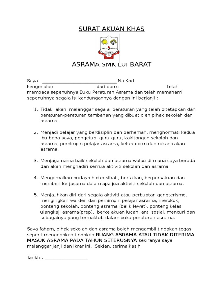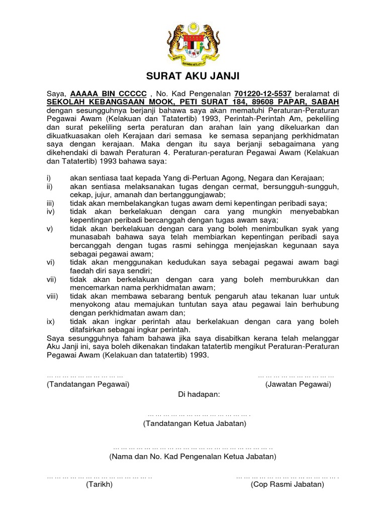 Contoh Surat Rasmi Aku Janji J Kosong X