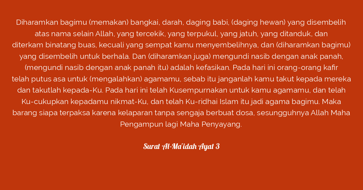 Sebutkan 4 Macam Makanan Yang Diharamkan Allah Swt Menurut Surat Al Maidah Ayat 3 Brainly Co Id