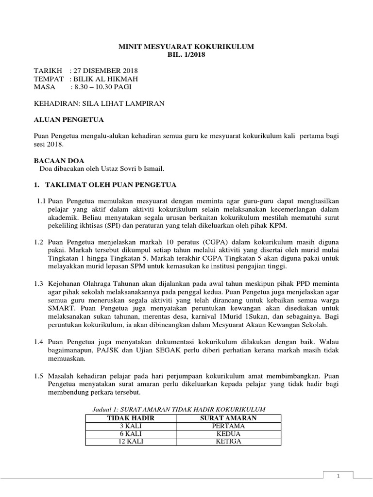 Minit Mesyuarat Kokurikulum 1 2018