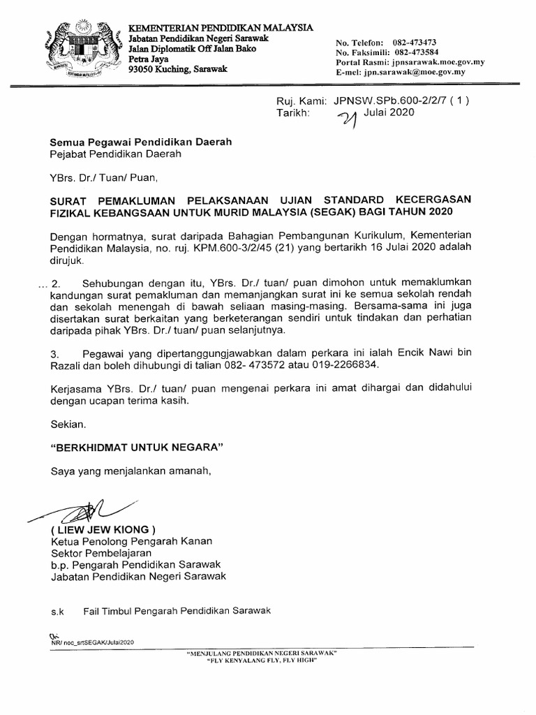 Surat Pelanjutan Pelaksanaan Ujian Segak Jabatan Pendidikan Negeri Johor Facebook