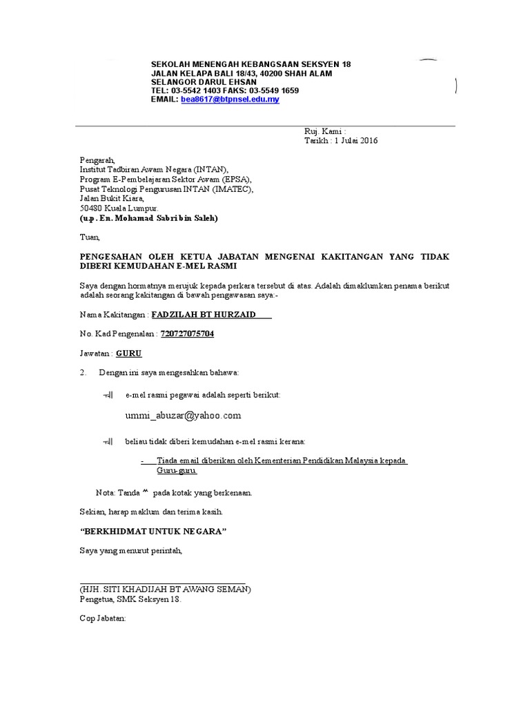 Contoh surat rasmi lantikan jawatan. Melalui satu surat siaran bilangan 6 tahun 2020 kementerian pendidikan malaysia memaklumkan berkenaan pindaan takwim penggal dan cuti pe. Pengurus xyz sdn bhd 80200 johor bahru johor darul takzim.