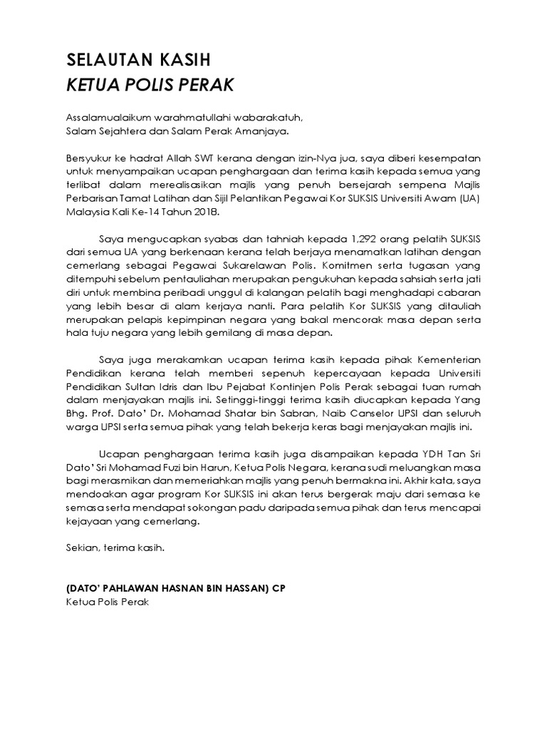 Surat Rasmi Ucapan Terima Kasih Rasmi Ru