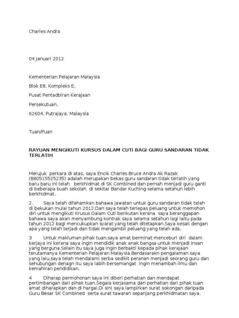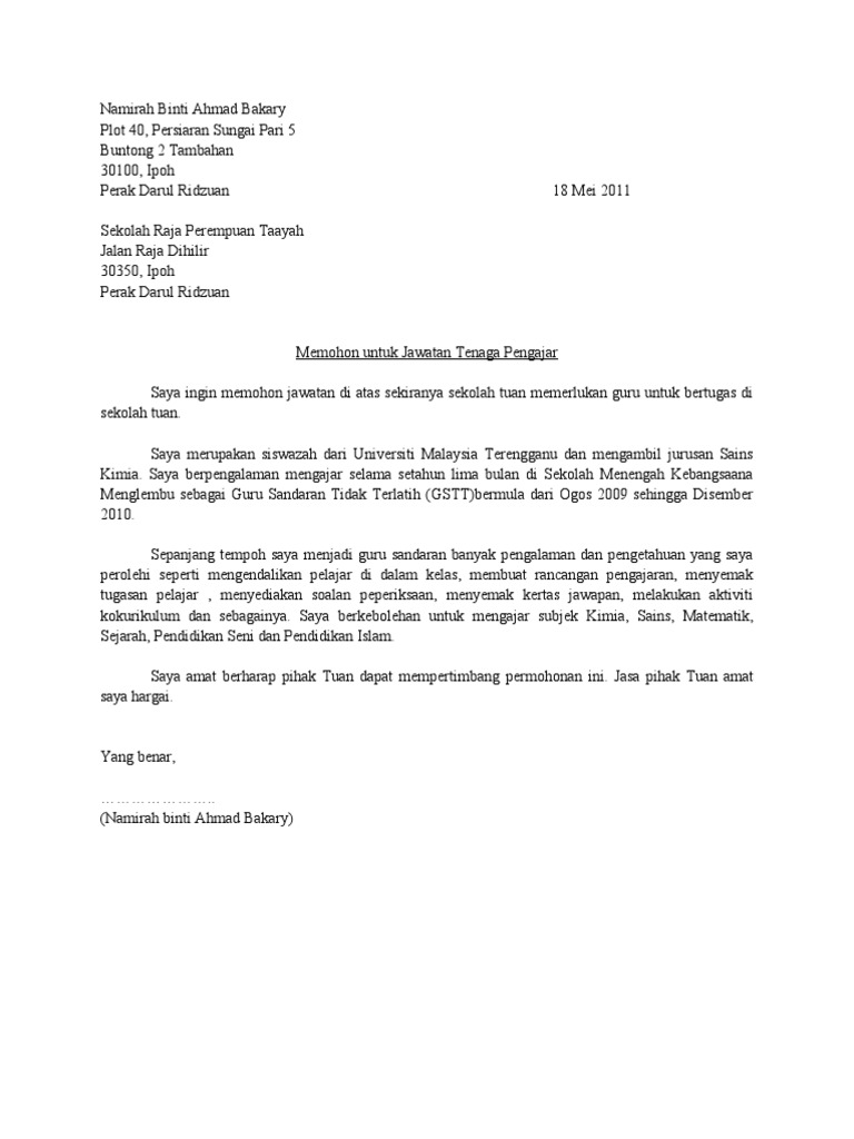 Contoh Surat Memohon Guru Ganti Di Sekolah Melalui Ppd Contoh Resume Cover Letter Curriculum Vitae Terbaik