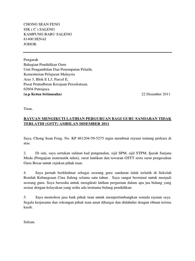 Contoh Surat Rayuan Kpli 2010