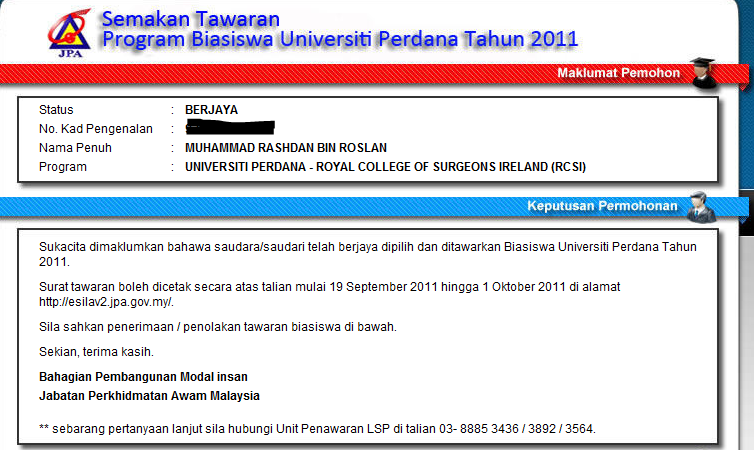 Keputusan Permohonan Biasiswa Jpa Pidn 2012