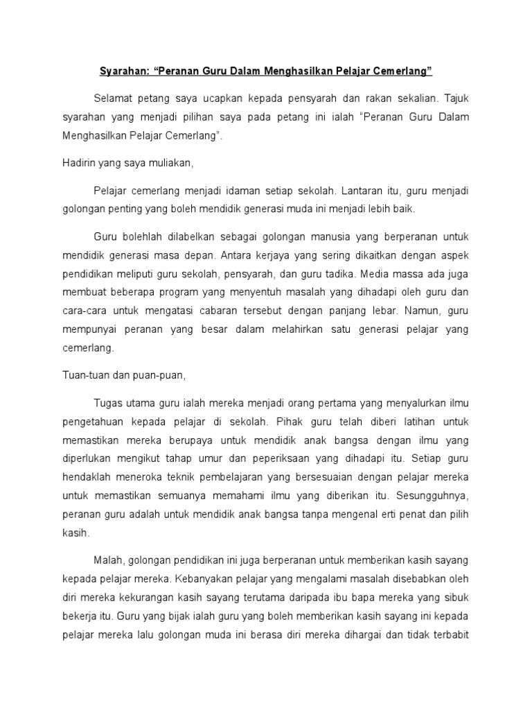 Syarahan Peranan Guru Dalam Menghasilkan Pelajar Cemerlang
