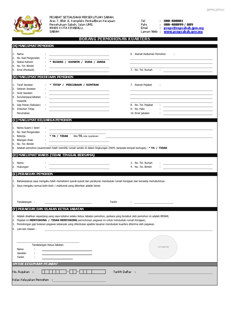 Adakah pasangan pemohon boleh memohon untuk menduduki kuarters walaupun kelayakan kelas kuarters adalah sama. Panduan tuntutan bayaran deposit bagi kuarters dan ruang pejabat dasar dan peraturan penawaran kuarters galeri foto. Isi borang hantar. Kgp song jalan song.
