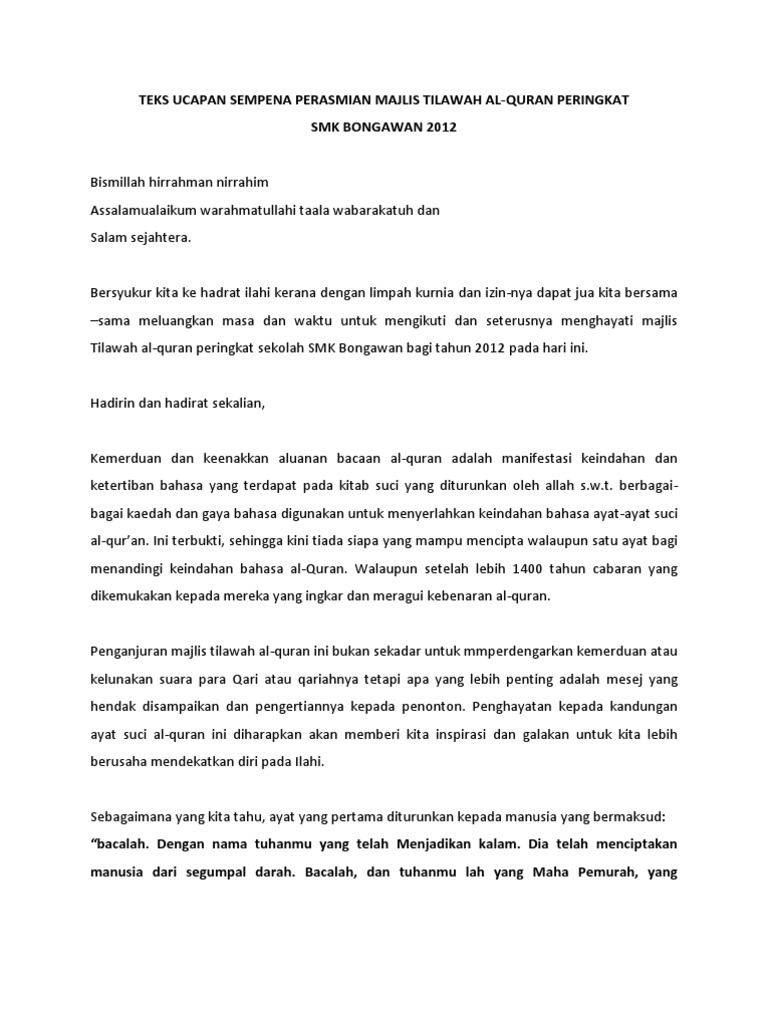 Teks Ucapan Aluan Mtq Pages 1 6 Text Version Anyflip