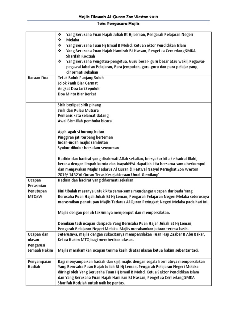223188218 Teks Ucapan Pengacara Majlis Hafazan Mtq Docx