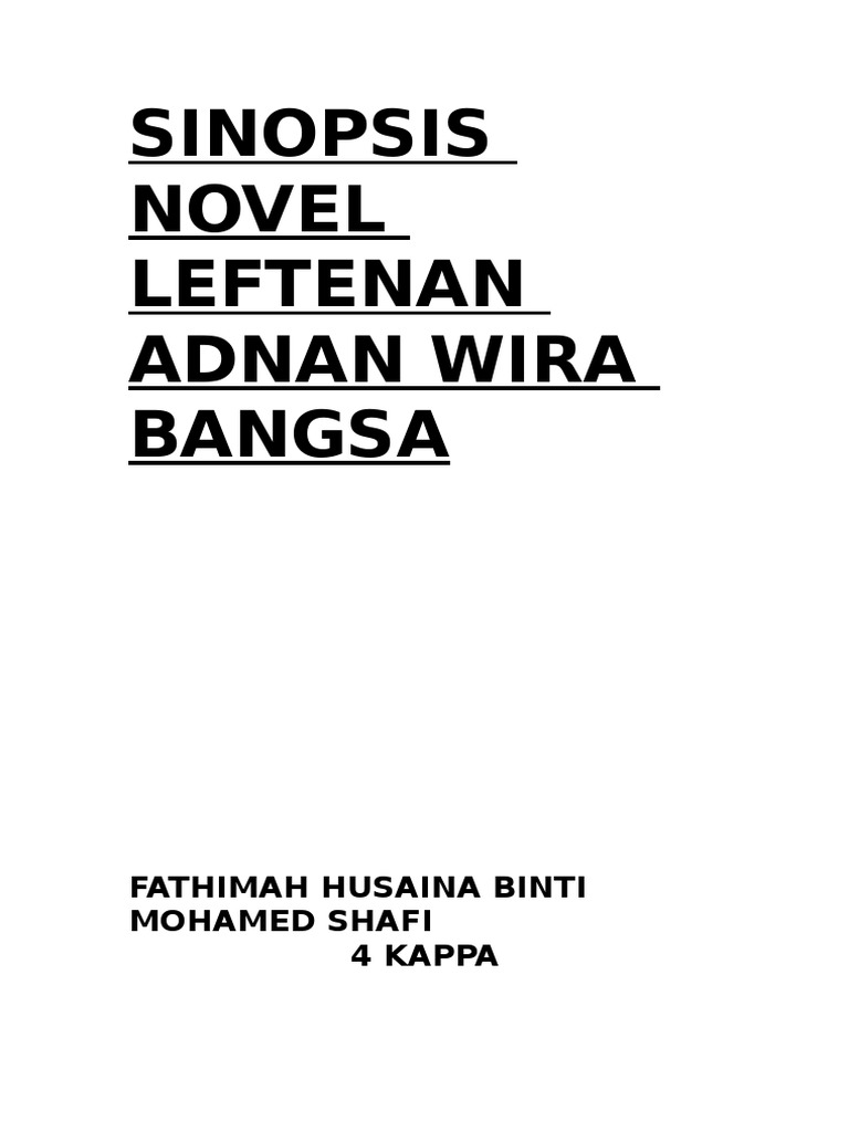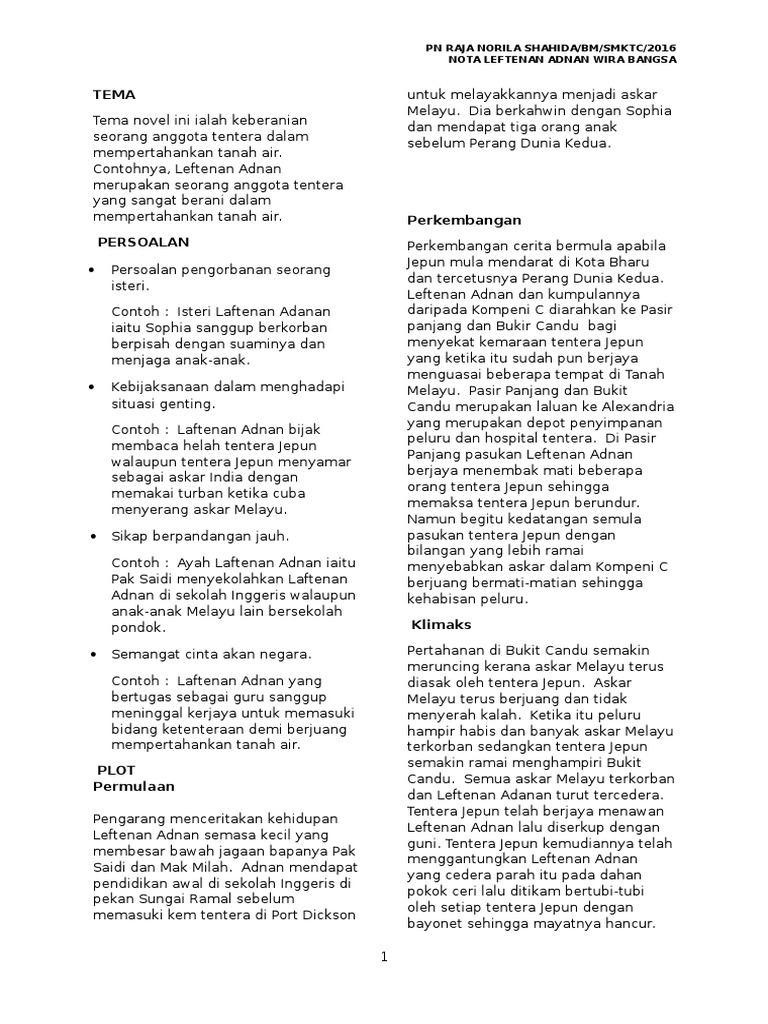 Sinopsis novel leftenan adnan wira bangsa bab 1. Buktinya beliau segera mengarahkan serangan. Sinopsis bab demi bab tema persoalan watak dan perwatakan latar masa latar tempat latar masyarakat plot teknik penceritaan nilai pengajaran soalan peperiksaan skema jawapan contoh soalan jawapan. Novel tirani latar tempat masyarakat masa.