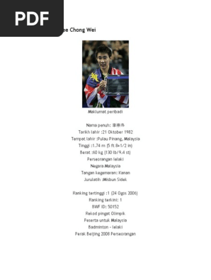 Tokoh Sukan Negara Biodata Dato Lee Chong Wei