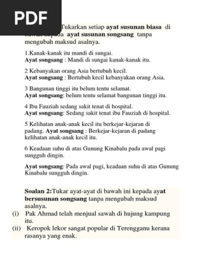 Cemerlang Bahasa Melayu Tatabahasa Ayat Biasa Ayat Songsang