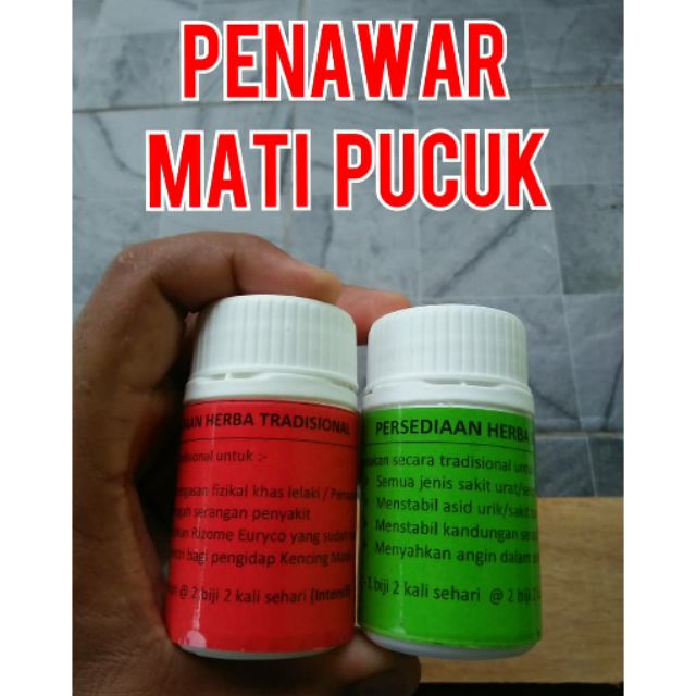 Herba herba alami anugerah alam seperti maca tongkat ali panax radix ginseng tribulus terrestris cordyseps sinensis dan digabungkan dengan bahan bahan lain didapati berupaya membantu merawat penderita. Sebelum menderita mati pucuk seorang lelaki akan mengalami tanda tanda awal atau apa yang disebut lemah tenaga batin seperti senarai berikut. Terbukti mujarab sejak 1963. Mati pucuk adalah istilah yang merujuk kepada kegagalan zakar lelaki untuk menegang dan melaksanakan fungsi seksual.