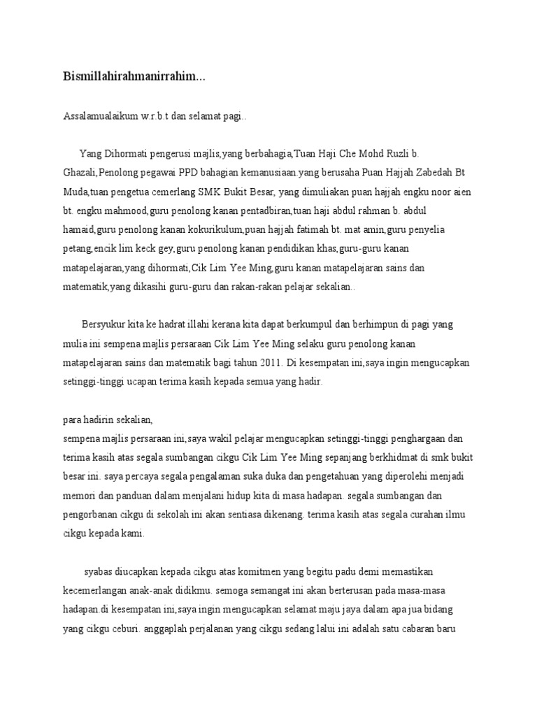 Doc Contoh Ucapan Wakil Murid Untuk Majlis Persaraan Sharina Sharina Academia Edu