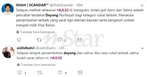 Anugerah persembahan terbaik ajl 32. Kuala lumpur 17 januari 2019 12 lagu bakal berentap untuk dinobatkan sebagai lagu terbaik 2018 di anugerah juara lagu 33 ajl33 bersiaran secara langsung dari axiata arena bukit jalil pada 3 februari 2019 ahad pukul 9 malam hanya satu lagu yang akan bersinar. Rm12 000 berserta trofi baucar cj wow shop rm 2 000 telefon pintar samsung a8. Ajl32 kali ni i tak boleh masuk dengan persembahan bayang dari khai bahar i rasa dia banyak lost time tu suara macam nak dengar dan tak dengar je macam agak kureng lah persembahan dia kali ni tapi apapun dia tetap ramai peminat yang tetap undi dia dan khai bahar dinobatkan.