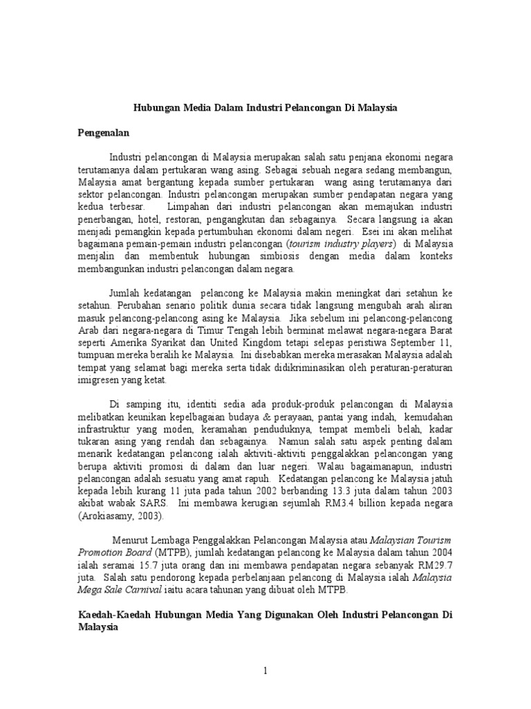Hubungan Media Dalam Industri Pelancongan Di Malaysia