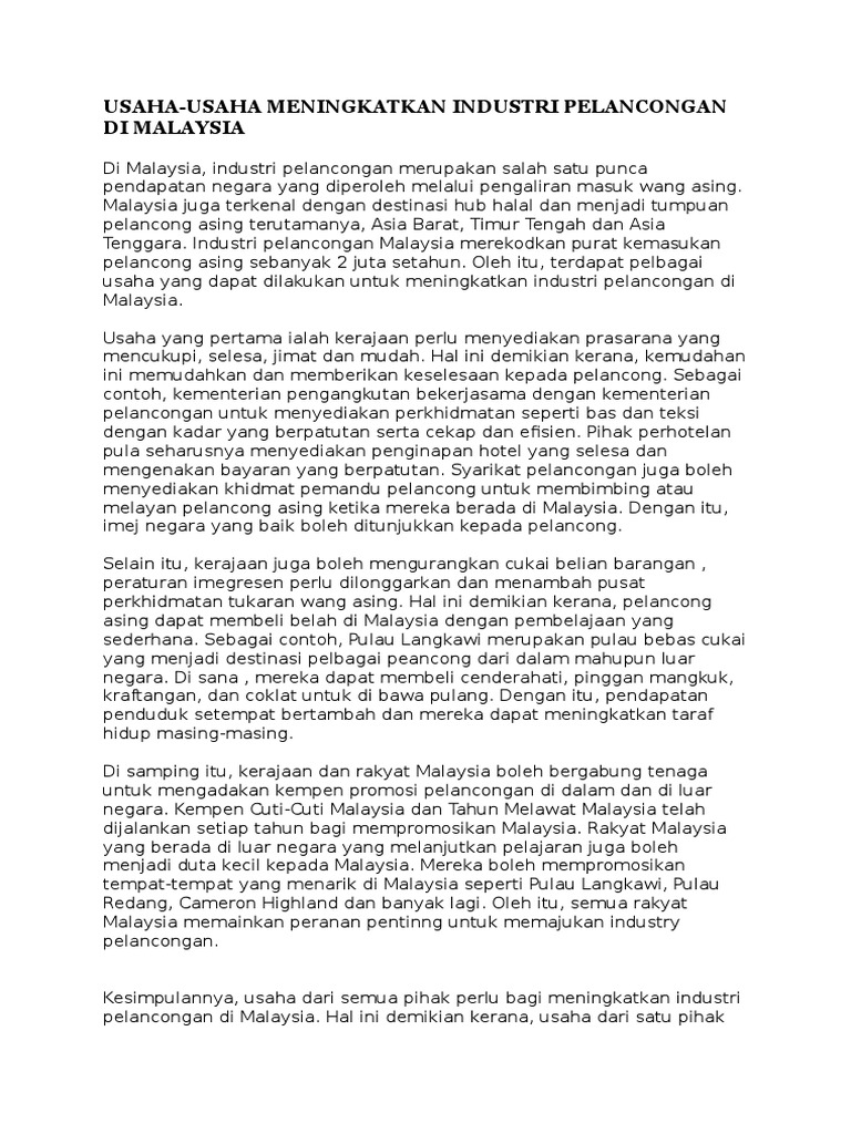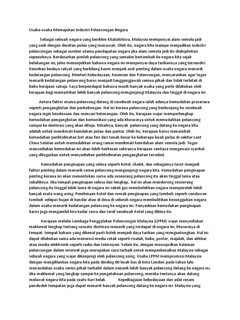 Karangan Spm Bahagian B Usaha Usaha Untuk Memajukan Sektor Pelancongan Negara