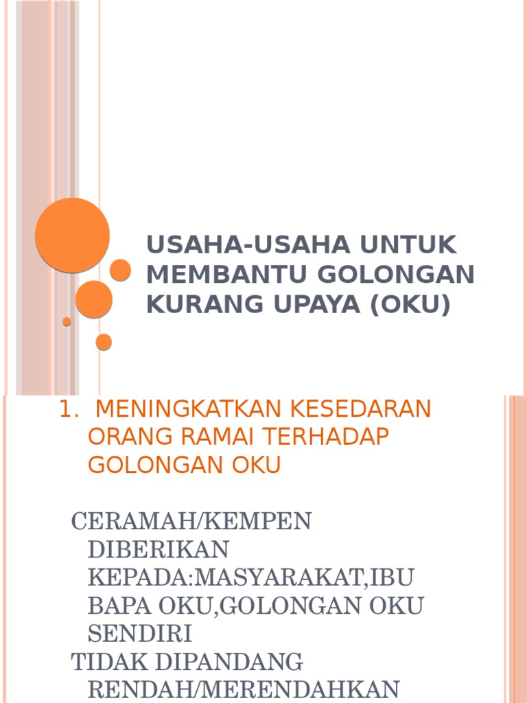 Usaha Usaha Membantu Orang Kurang Upaya Oku