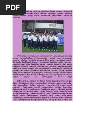 Usaha usaha memupuk perpaduan dalam kalangan murid. Pihak kerajaan mahupun rakyat juga mempunyai peranan masing masing di dalam merealisasikan perpaduan kaum. Sultan nazrin berharap agar usaha berkenaan menjadi. 79 14 79 found this document useful 14 votes 36k views 1 page. Baginda bertitah maka itu guru guru wajib terus memberi keutamaan memupuk perpaduan dalam kalangan pelajar pelbagai kaum walaupun negara telah mencapai kemerdekaan berpuluh tahun lamanya.