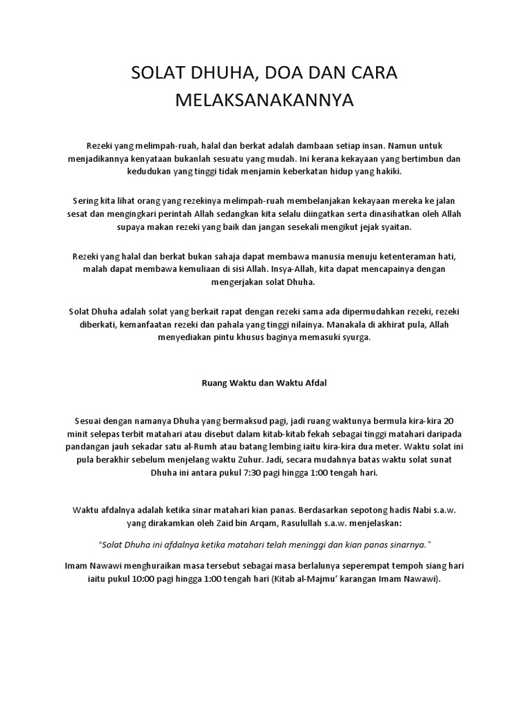 Nabi saw keluar menuju tempat ahli quba di kala itu mereka sedang mengerjakan solat dhuha. Ahmad muslim dan tirmidzi. Inilah solat orang orang yang kembali kepada allah iaitu di waktu anak anak unta telah bangkit kerana kepanasan waktu dhuha hr. Zaid bin arqam r a.