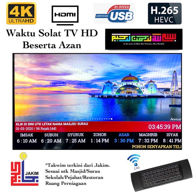 Jam Waktu Solat Tv Hd Untuk Paparan Masjid Surau Pejabat Restoran Rumah Shopee Malaysia