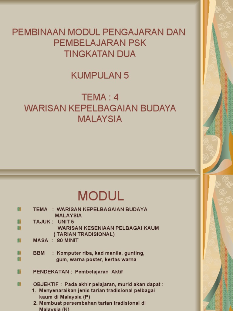 Pembinaan Modul Pengajaran Dan Pembelajaran Psk Tingkatan Dua Kumpulan 5 Tema 4 Warisan Kepelbagaian Budaya Malaysia
