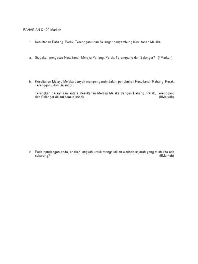 Kuiz Warisan Kesultanan Melayu Melaka Di Pahang Perak Terengganu Dan Selangor Quiz